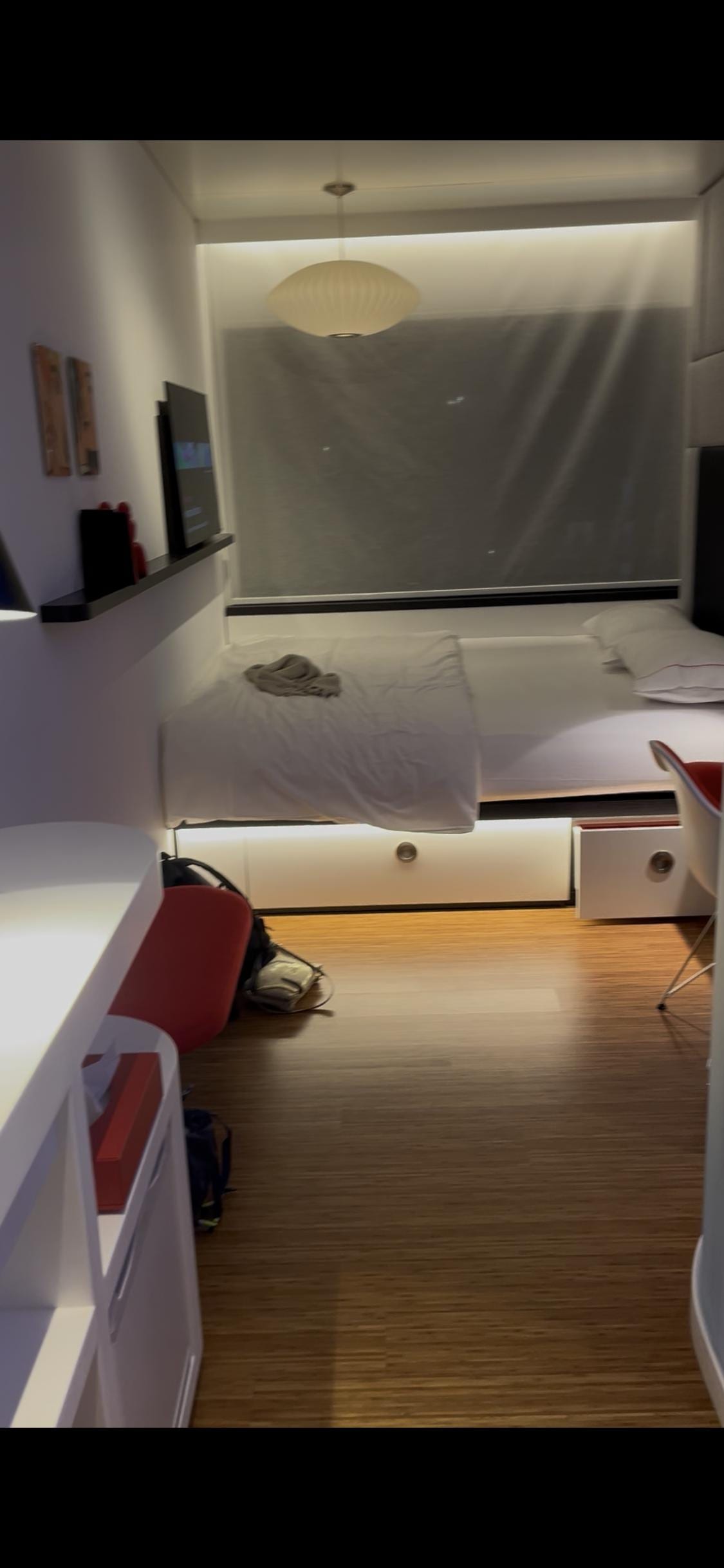 L’arrivée super, le personnel très sympa et s’occupe de nous très vite, arrivée dans la chambre, impeccable, propre, la douche nickel, la système de connexions (iPad) super
