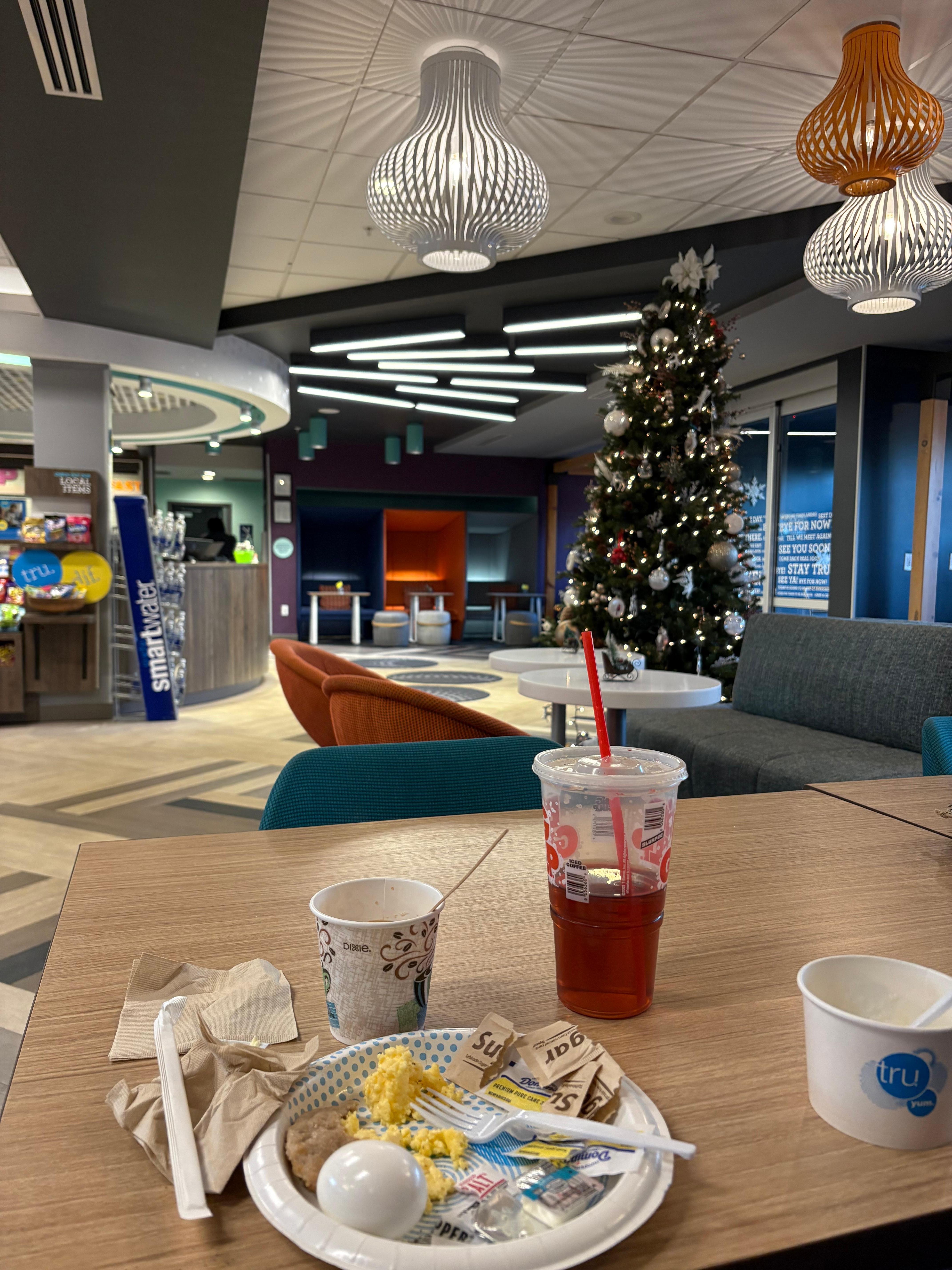 The hotel is very nice. Comfortable beds but small room. They do use the space and give you places to put your things. Only complaint no coffee makeup or ice bucket in room. Coffee tea and hot chocolate in lobby. Ice the ice is also in the lobby.is also in lobby. Toilet paper and Kleenex are one ply. Spend a little more on them and stop going cheap because we use more when it is that thin.