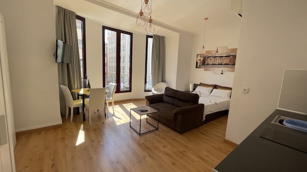 舒适公寓, 1 间卧室, 阳台, 海滨 | 起居区 | 35-英寸智能电视 (配备卫星频道)、电视