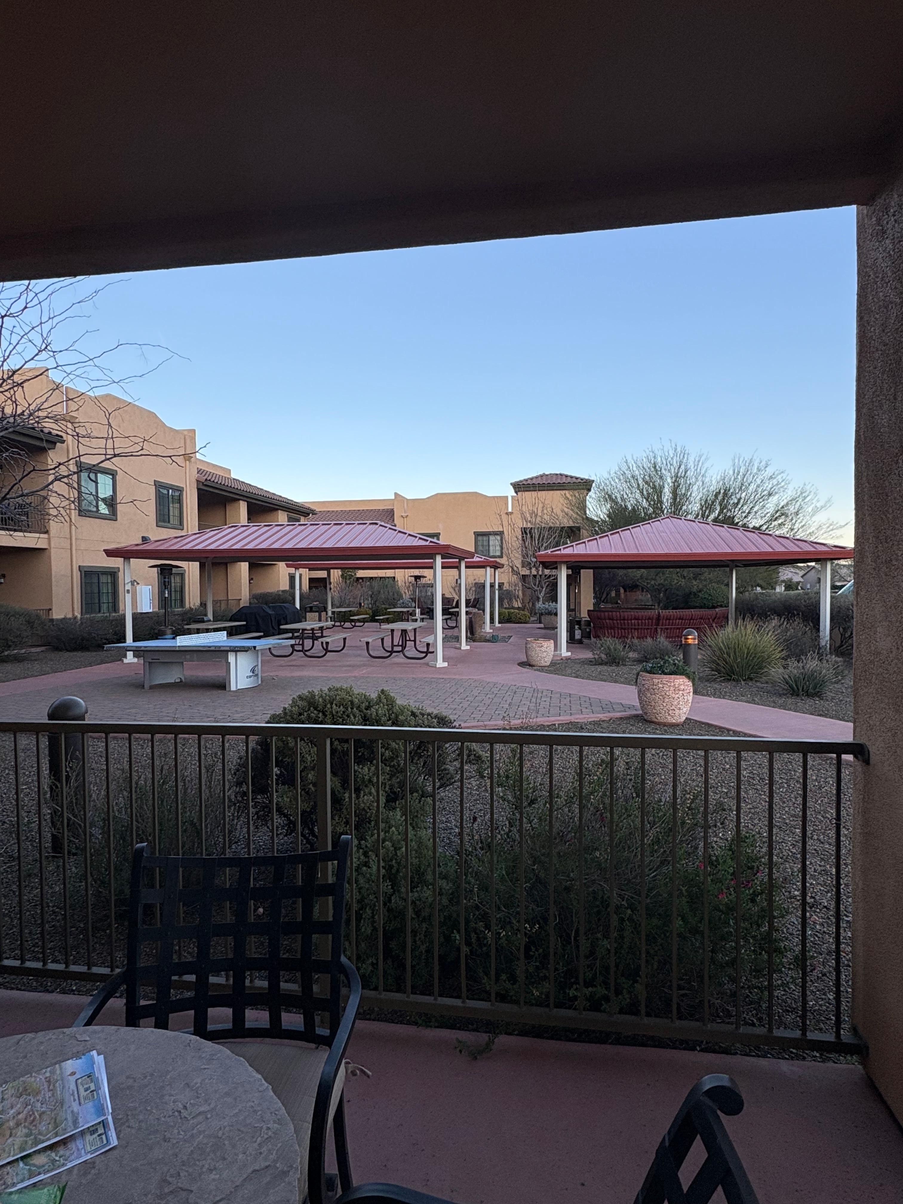 This was a stopover between Flagstaff and Phoenix so that we could enjoy a little bit of time in Sedona. Check in and check out were efficient. The accommodations were clean and comfortable. Great sitting area for dining or working on laptops. Large tub/shower combo in bathroom with toilet behind sliding door. Pool and hot tub area had a great view and plenty of towels on hand.